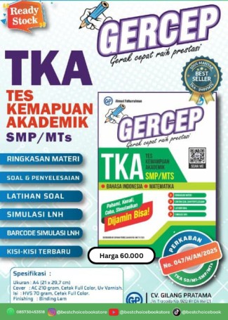 Apakah Anda sedang mempersiapkan diri menghadapi Tes Kemampuan Akademik (TKA) SMP/MTs? Kini hadir solusi terbaik untuk membantu belajar lebih efektif, yaitu Buku GERCEP TKA SMP/MTs – Gerak Cepat Raih Prestasi. Buku ini dirancang khusus untuk membantu siswa SMP dan MTs memahami materi, berlatih soal, dan menguasai teknik menjawab ujian dengan lebih percaya diri.