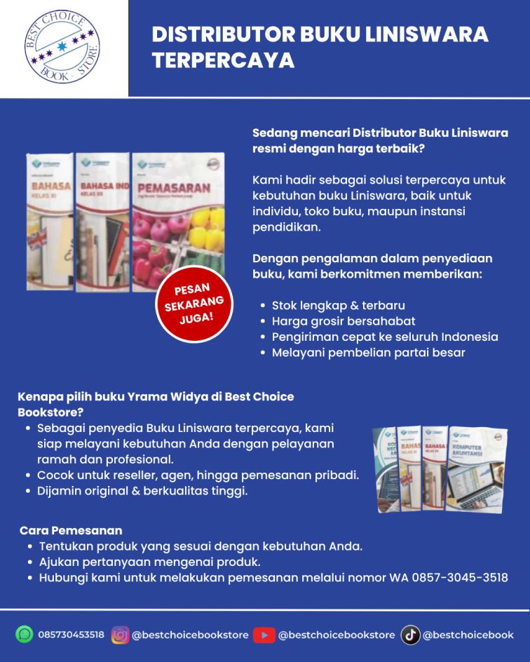 Jika Anda sedang mencari Distributor Buku Liniswara Resmi dan Terpercaya, maka Best Choice Bookstore adalah pilihan terbaik. Dengan stok lengkap, harga grosir bersahabat, pelayanan profesional, serta jaminan original, kami siap menjadi solusi kebutuhan buku Anda, baik untuk individu, toko buku, maupun instansi pendidikan.