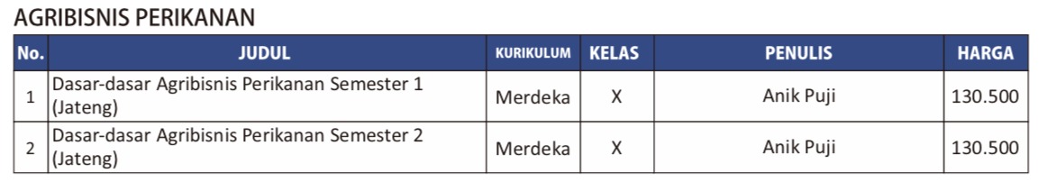 | Nama Barang | Distributor/Penyedia/Supplier/Agen/Jual Buku SMK Penerbit Andi Kurmer Agribisnis Perikanan [WA 085730453518] |
