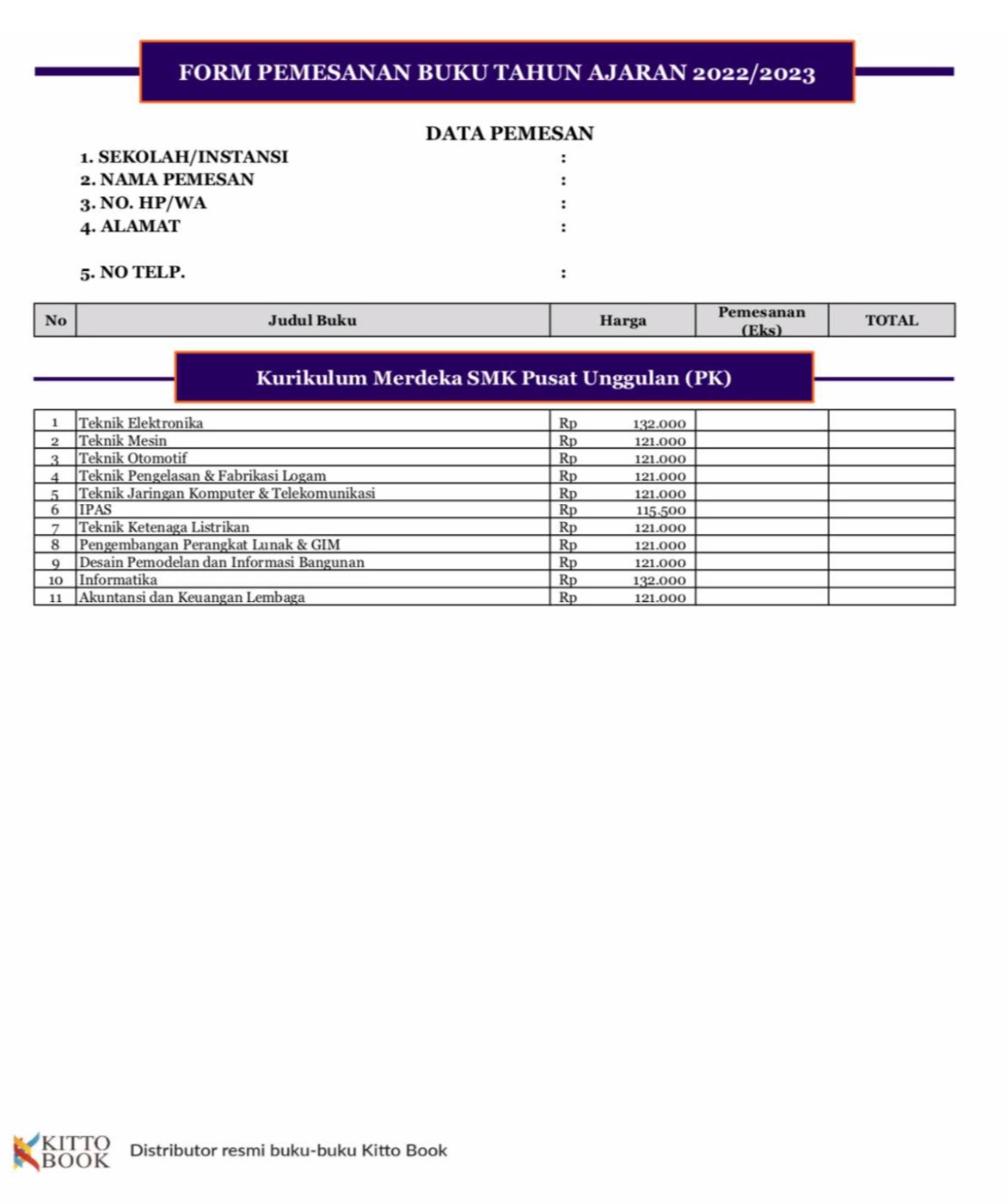 Distributor/Penyedia/Supplier/Agen/Jual Buku Teks Pelajaran Penerbit Kitto Book Jenjang SMK Tahun 2022 (WA 085730453518)