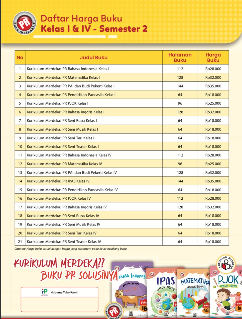 | Nama Barang | Distributor/Supplier/Penyedia/Jual Buku PR Kurikulum Merdeka Intan Pariwara SD/MI Kelas 1 & 4 Semester 2 2022/2023 [WA 085730453518] |