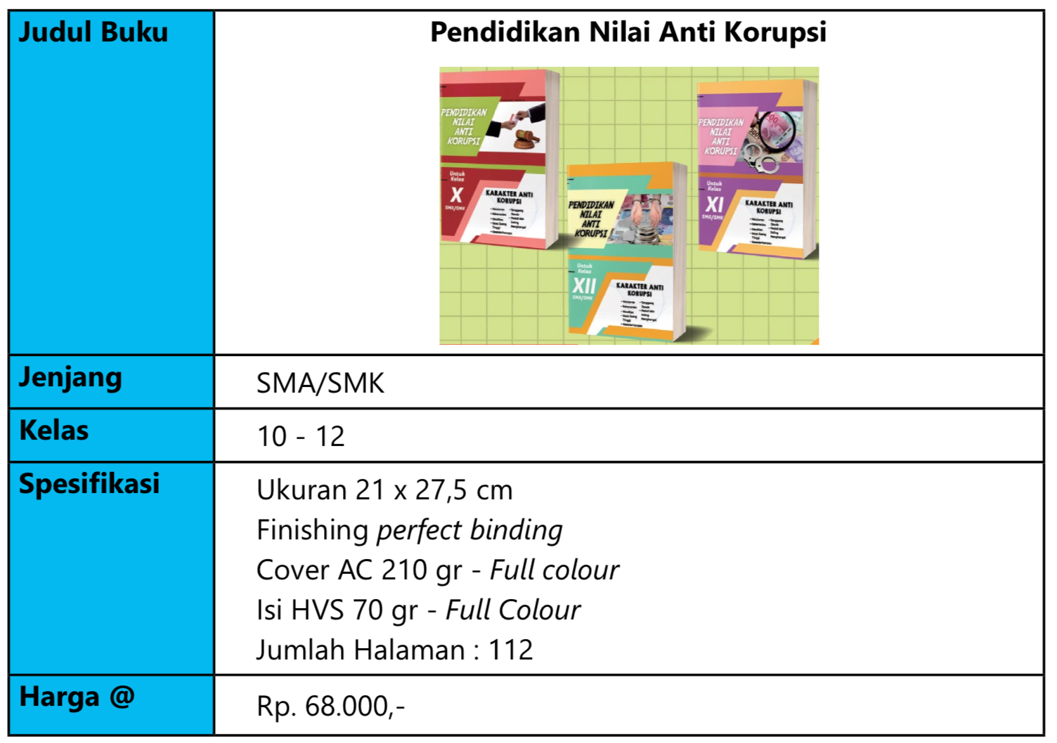 | Nama Barang | Distributor Buku Pendidikan Karakter Kebangsaan & Pengenalan Sikap Anti Korupsi untuk SMA/MA/SMK |