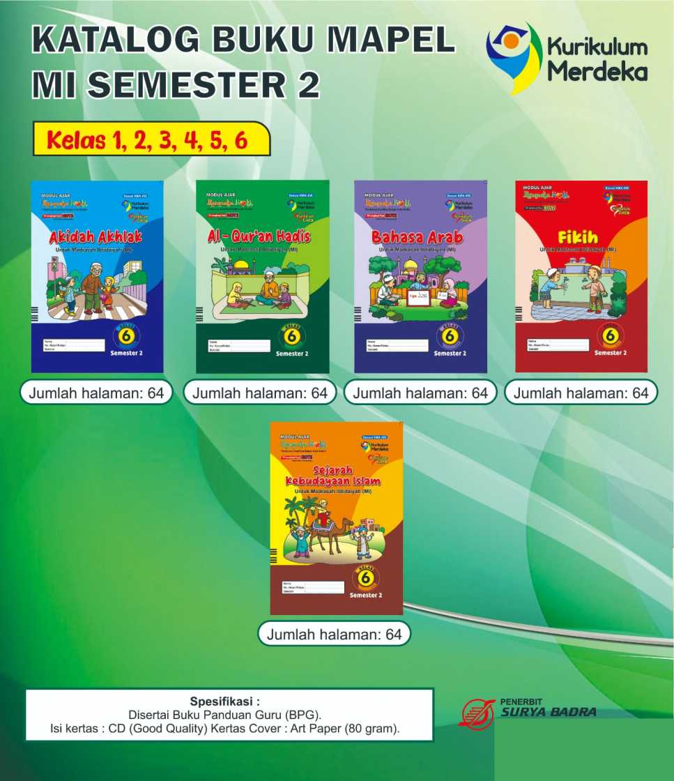 Berikut pembagian buku untuk setiap kelas MI semester 2 terbitan Surya Badra:
