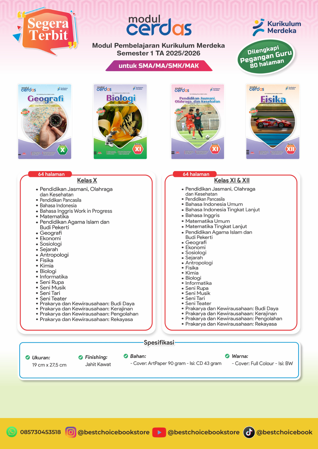 Sebagai distributor terpercaya LKS Kurikulum Merdeka jenjang SMA/MA untuk Semester Ganjil Tahun 2025/2026, penerbit Warna Mukti Grafika adalah pilihan yang tepat. Dapatkan materi pembelajaran yang sesuai dengan kurikulum terbaru, dengan kualitas terbaik, dan harga yang terjangkau. Hubungi kami melalui WhatsApp di 085730453518 untuk pemesanan dan informasi lebih lanjut.