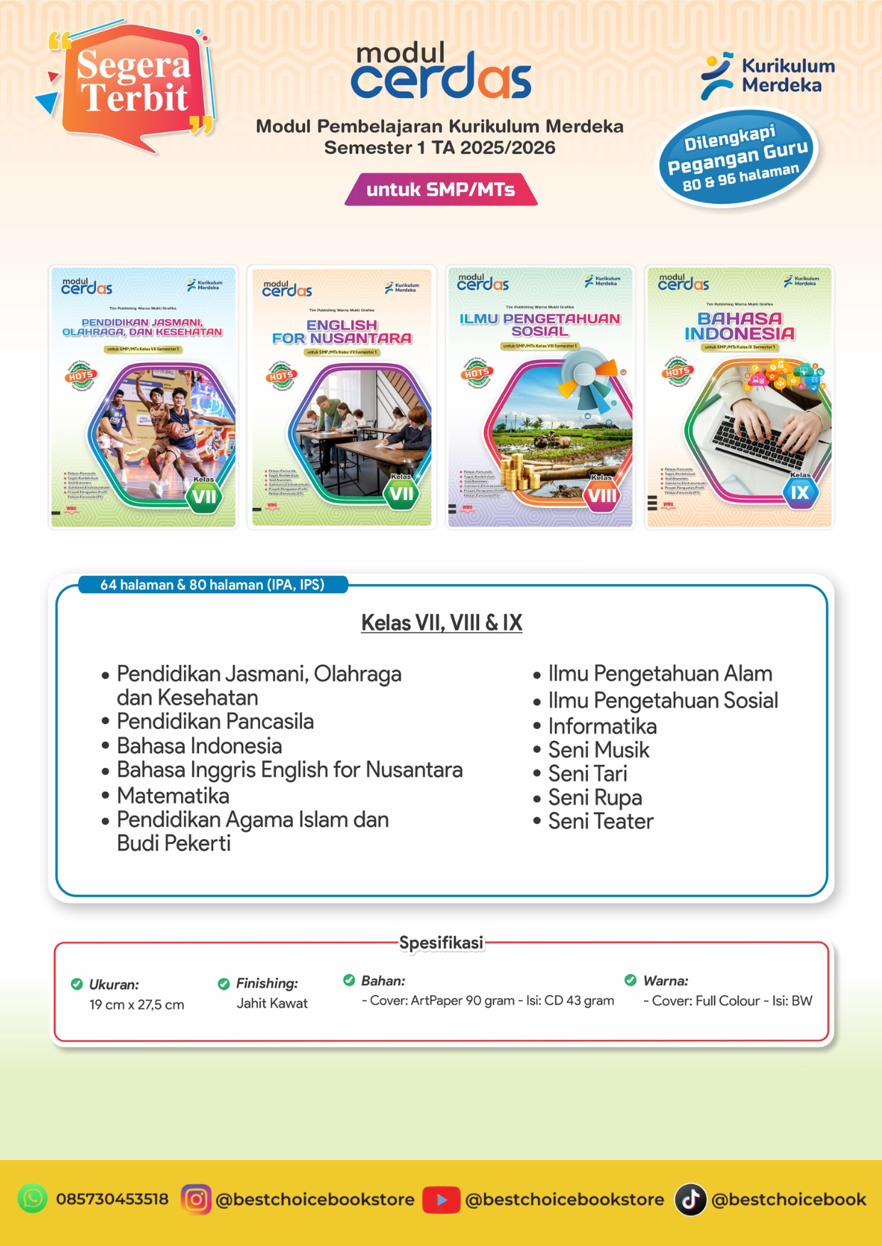 Sebagai distributor/supplier LKS Kurikulum Merdeka untuk jenjang SMP/MTs, Penerbit Warna Mukti Grafika hadir dengan solusi bahan ajar yang sesuai dengan kebutuhan kurikulum terbaru. LKS yang kami tawarkan akan membantu memudahkan para pendidik dalam menyampaikan materi pelajaran kepada siswa di semester ganjil Tahun Ajaran 2025/2026.