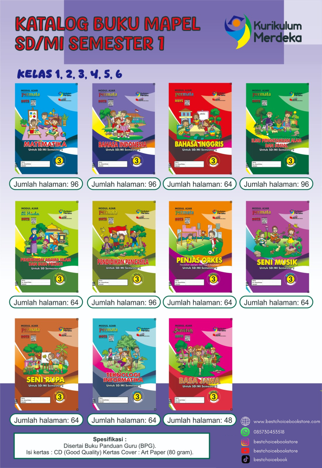 Kami menyediakan LKS untuk berbagai mata pelajaran di jenjang SD/MI, mulai dari Matematika, IPA, Bahasa Indonesia, Pendidikan Agama, hingga Pendidikan Kewarganegaraan (PKn). Setiap mata pelajaran dikemas dalam bentuk yang menyenangkan dan mudah dipahami oleh siswa.