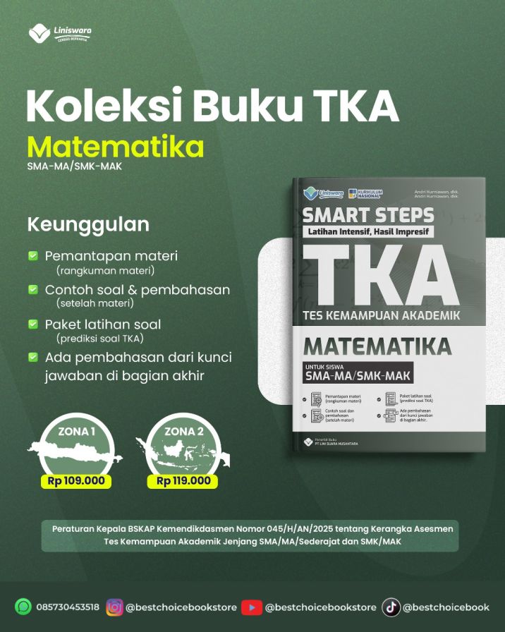 Segera lengkapi persiapan ujian Anda dengan buku TKA Matematika terbaik ini melalui Best Choice Bookstore.