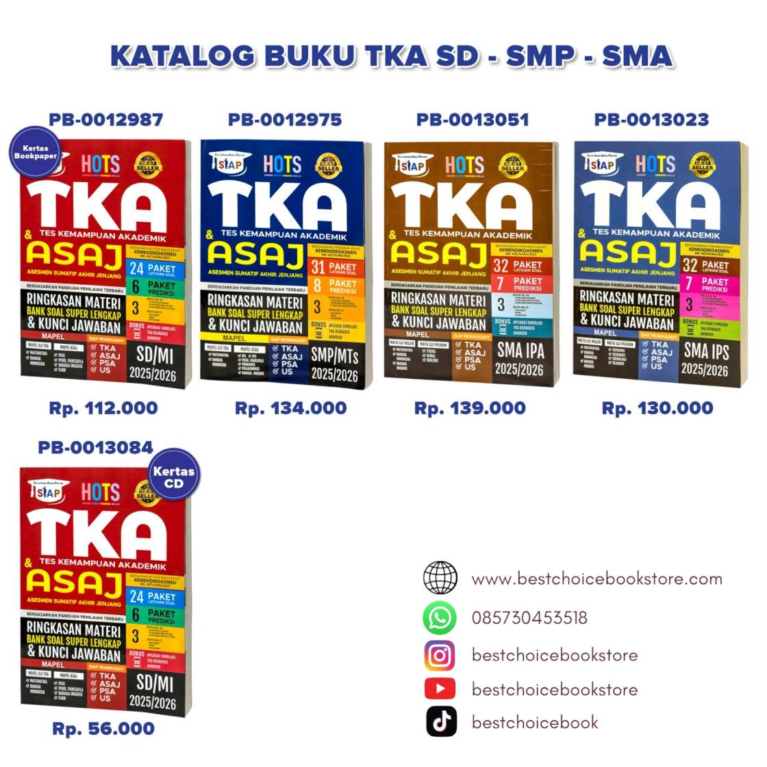 Segera dapatkan buku TKA ASAJ sesuai jenjang Anda melalui distributor resmi.