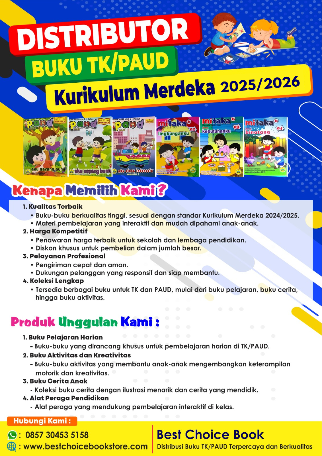 ![Penyedia/Supplier/Distributor/Agen/Jual Buku TK dan PAUD Kurikulum Merdeka/Kurmer Tahun 2025/2026 [WA 085730453518]](https://www.bestchoicebookstore.com/wp-content/uploads/2025/02/PenyediaSupplierDistributorAgenJual-Buku-TK-dan-PAUD-Kurikulum-MerdekaKurmer-Tahun-20252026-WA-085730453518-212x300.png)
