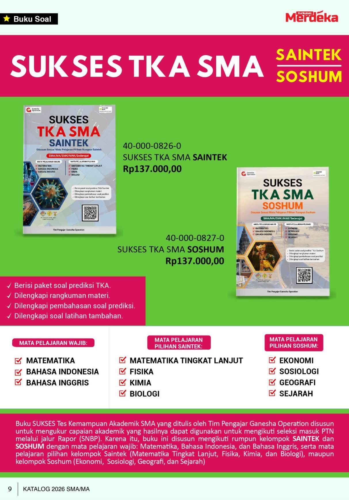 Dengan pendekatan yang terstruktur dan fokus pada kompetensi akademik, buku ini menjadi solusi tepat bagi siswa yang ingin mempersiapkan TKA secara maksimal.