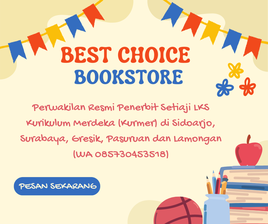 Dalam upaya mendukung penerapan Kurikulum Merdeka (Kurmer) yang dicanangkan oleh Kementerian Pendidikan dan Kebudayaan, Penerbit Setiaji LKS hadir sebagai solusi penyedia buku-buku LKS (Lembar Kerja Siswa) berkualitas untuk berbagai jenjang pendidikan, mulai dari SD/MI, SMP/MTs, hingga SMA/MA/SMK. Kami hadir di wilayah Sidoarjo, Surabaya, Gresik, Pasuruan, dan Lamongan, siap melayani kebutuhan pendidikan dengan menyediakan materi ajar yang sesuai dengan kurikulum terbaru.