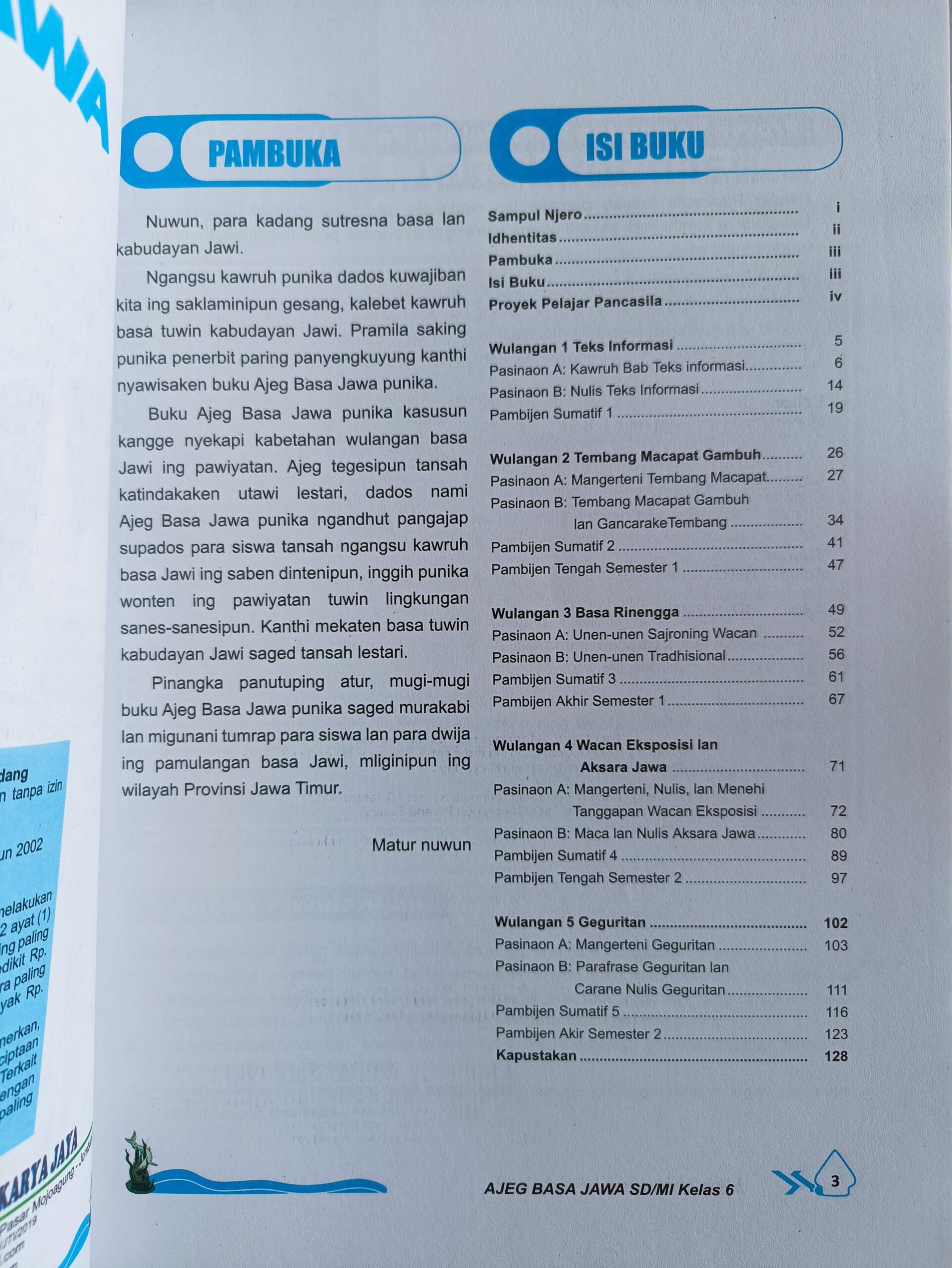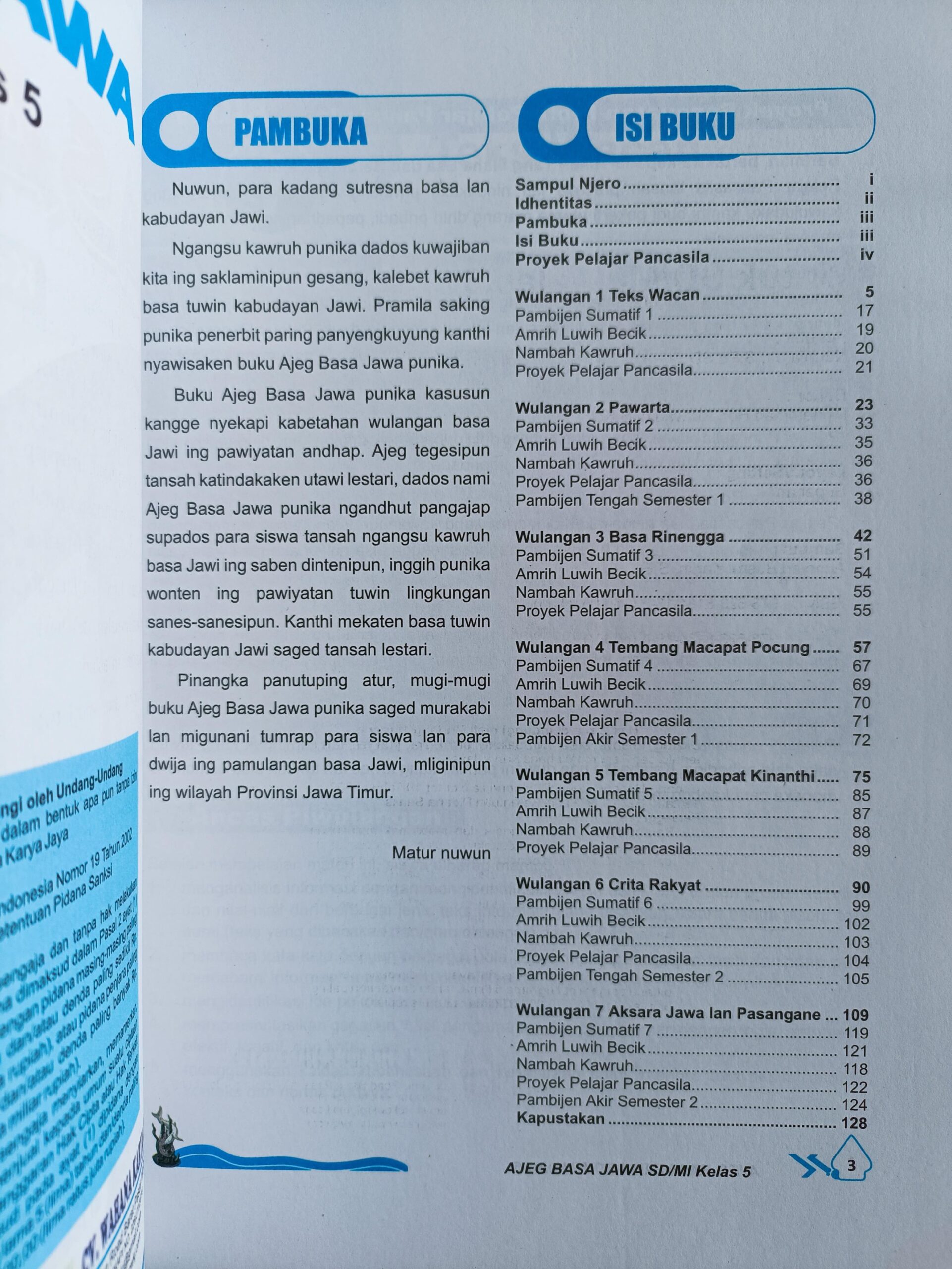 - Buku paket Ajeg Jawa Kelas 5