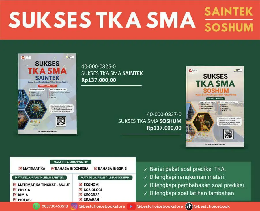Beli sekarang dan mulai perjalananmu menuju kampus impian bersama Best Choice Bookstore! Jangan tunggu hingga waktu mepet, karena sukses dimulai dari persiapan dini!