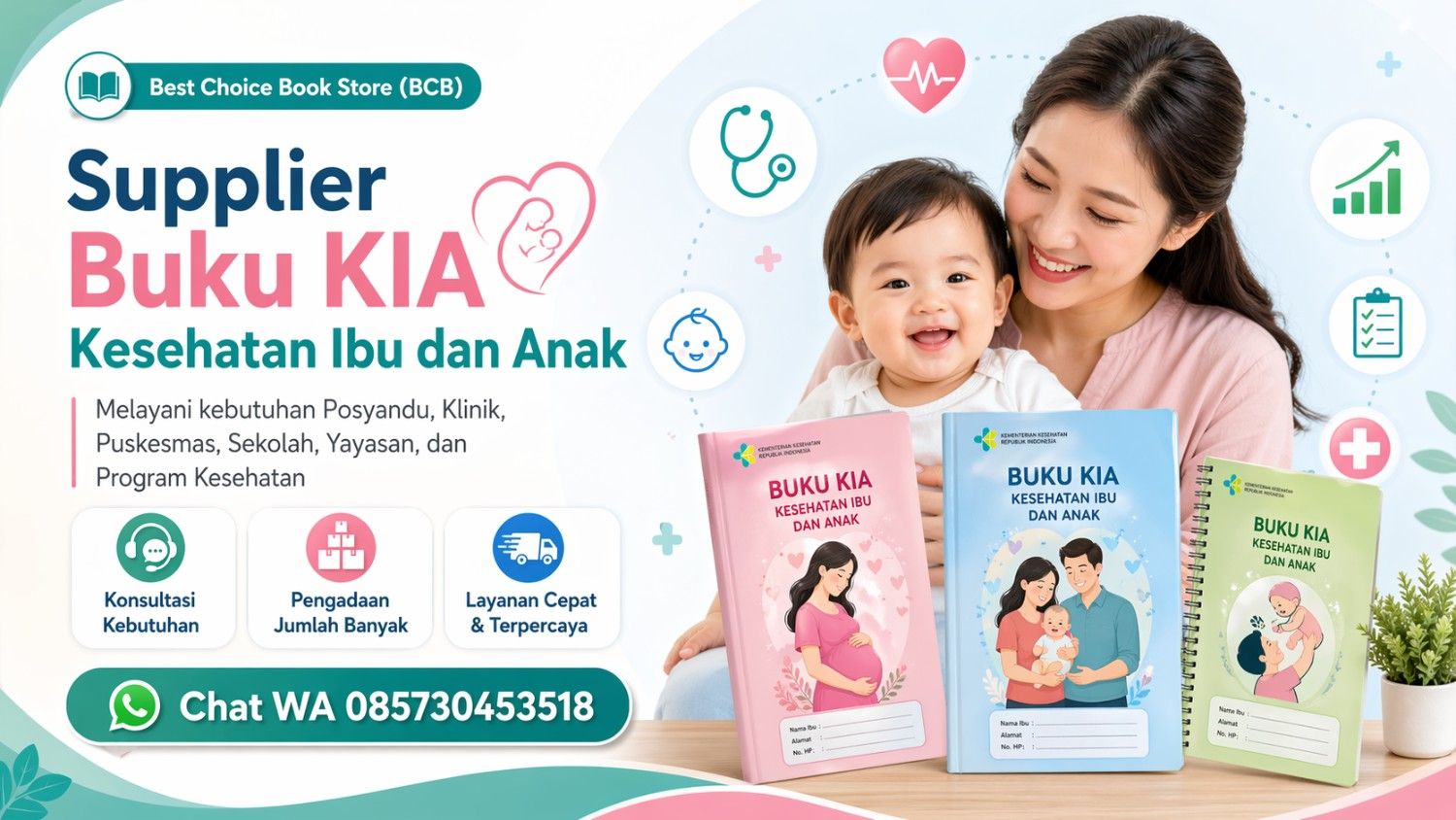 Best Choice Book Store melayani pemesanan Buku KIA (Kesehatan Ibu dan Anak) untuk berbagai kebutuhan pengadaan, edukasi kesehatan, pendampingan keluarga, dan program layanan ibu-anak.