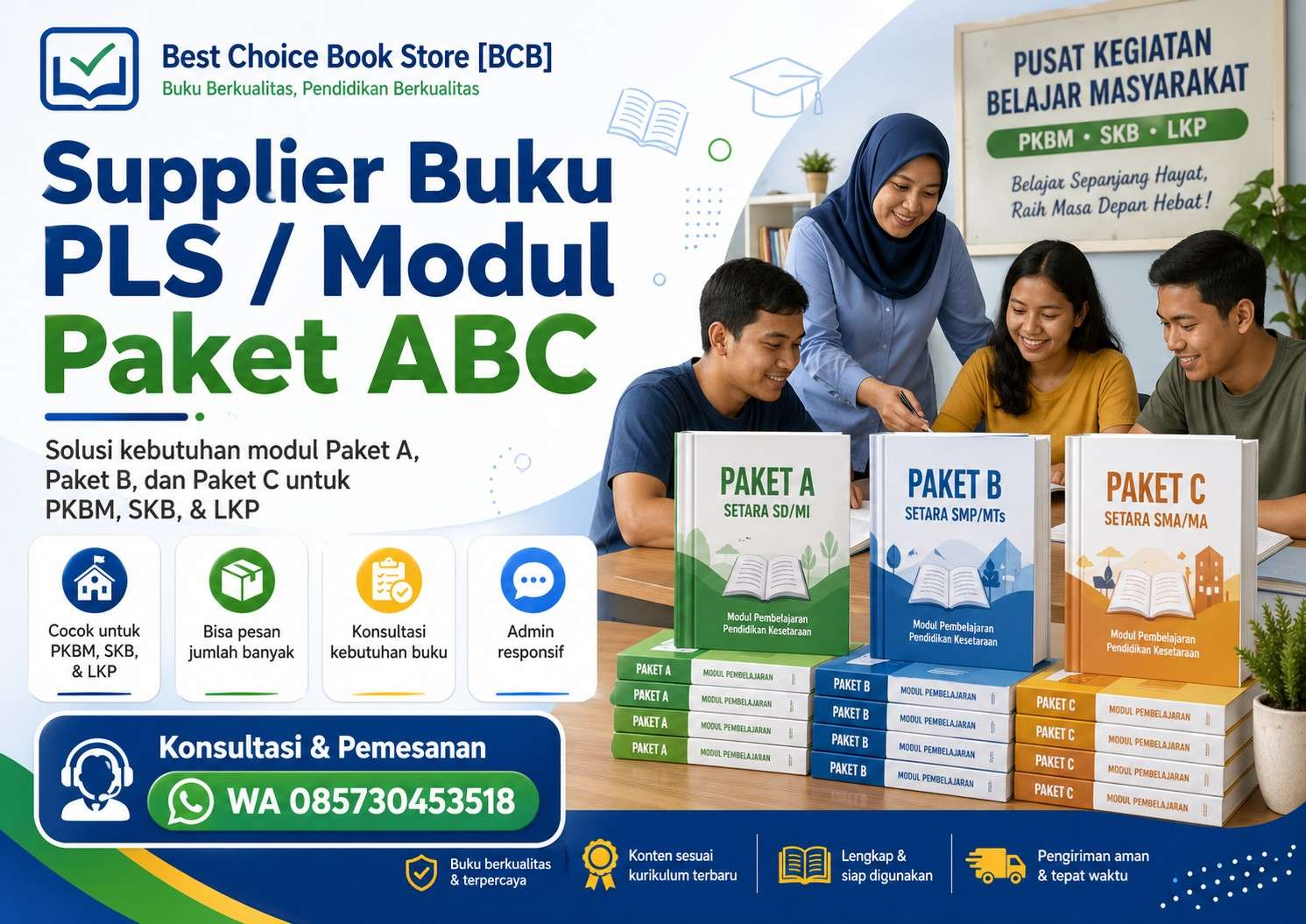 📚 Best Choice Book Store [BCB] melayani kebutuhan Buku PLS / Modul Paket ABC untuk lembaga pendidikan nonformal, seperti PKBM, SKB, LKP, yayasan pendidikan, dan lembaga penyelenggara program kesetaraan.