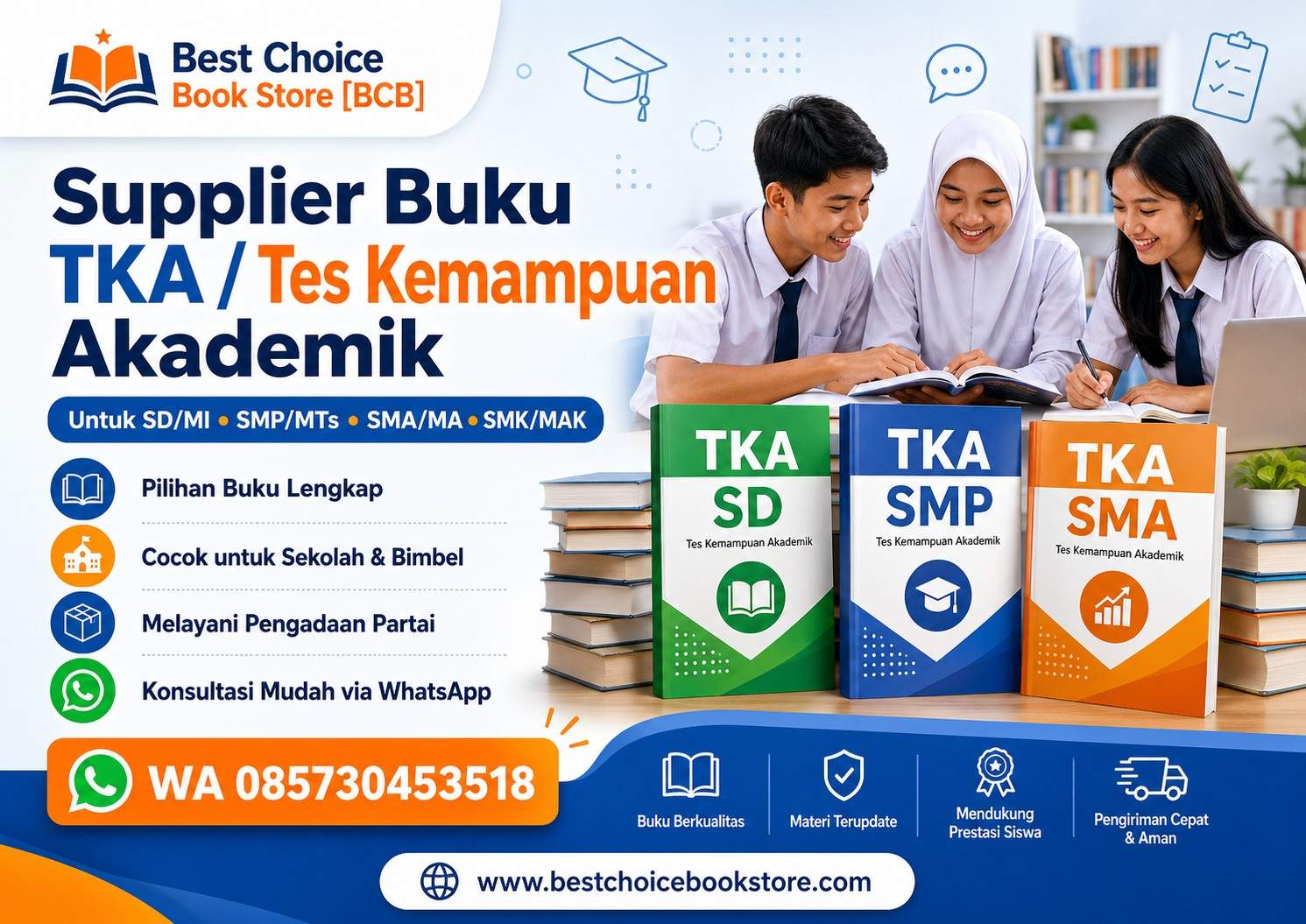 Best Choice Book Store siap membantu kebutuhan buku TKA untuk sekolah, madrasah, bimbel, yayasan, dan pengadaan buku pendidikan.