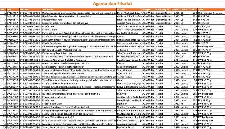 Apakah Anda sedang mencari buku-buku Agama dan Filsafat untuk keperluan kampus, lembaga keagamaan, toko buku pendidikan, atau perpustakaan universitas?