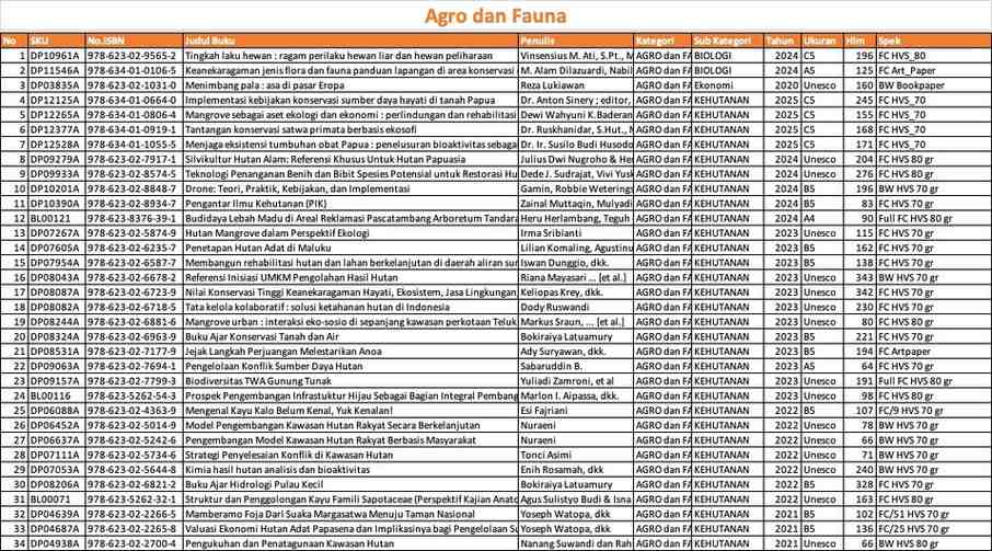 Apakah Anda sedang mencari buku-buku Agro dan Fauna berkualitas untuk mendukung pendidikan, penelitian, atau pengembangan usaha di bidang pertanian dan peternakan?